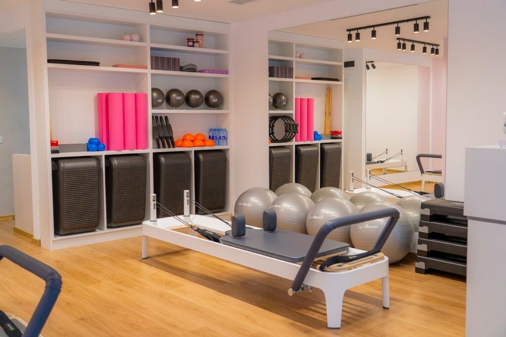 Разполагаме с отделни зали за индивидуални и групови тренировки, оборудвани с най- висок клас уреди на американския бранд Balanced body – световен лидер в пилатес оборудването.